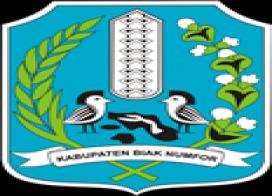Sebuah pita berwarna putih melengkung ke atas dengan tulisan Kabupaten Biak Numfor.